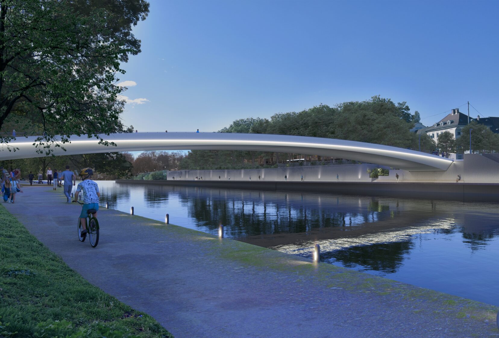More than a crossing, Wilhelmsbrücke acts as a public space above the water, strengthening Stuttgart’s connection to the river. The design opens up the South bank by shifting the abutment and adds two organic stair routes to the water. On the North bank, planted sculptural steps soften the flood wall and connect to a new riverside path, enhancing visual and ecological links between the city and the river.